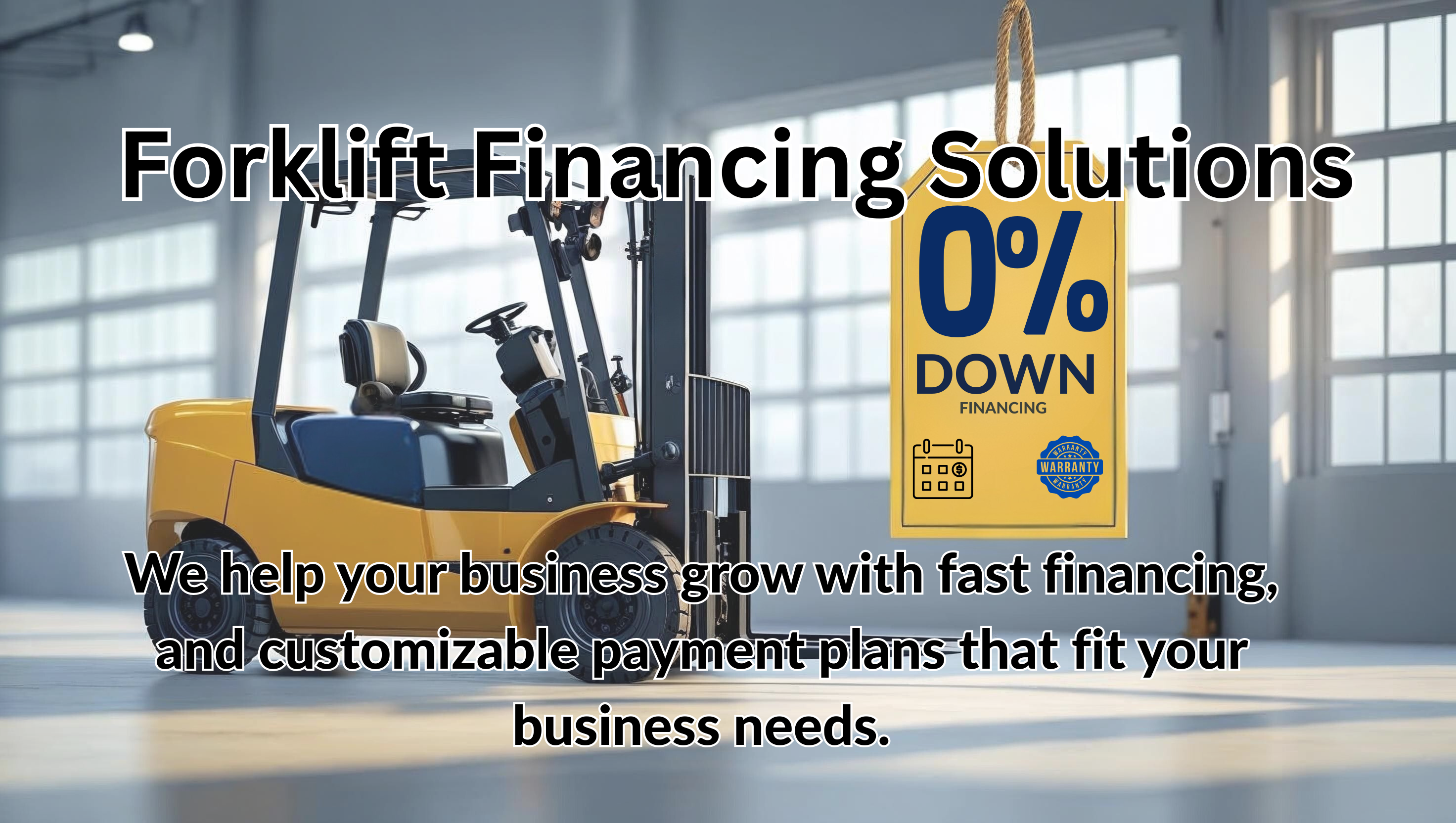 Finance your forklift with a leasing-to-own program customized to fit your needs! With our simple, CIT Small Business Solutions, we can provide fast, flexible & affordable financing to make getting new & used commercial equipment easy!